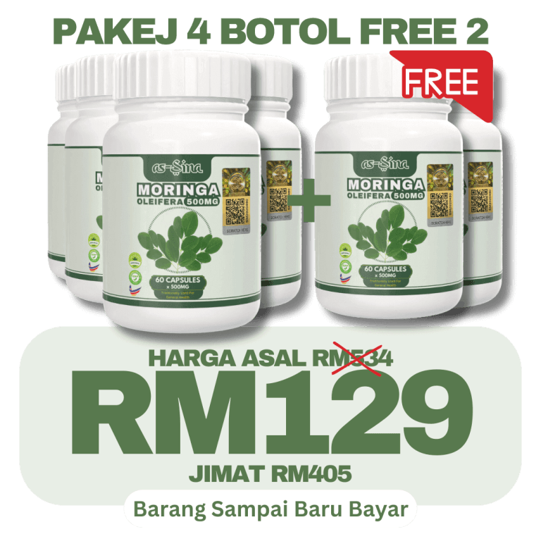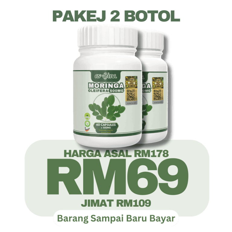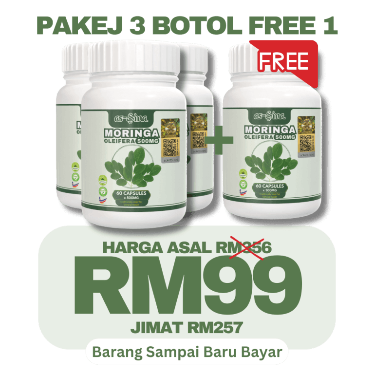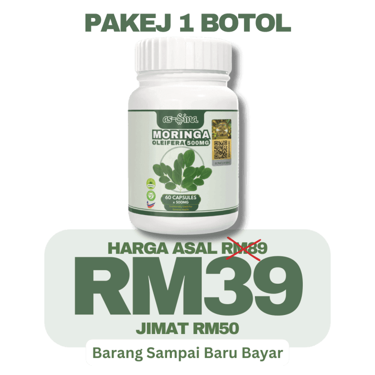 1 botol Moringa Oleifera as-Sina adalah untuk 30 hari pengunaan.