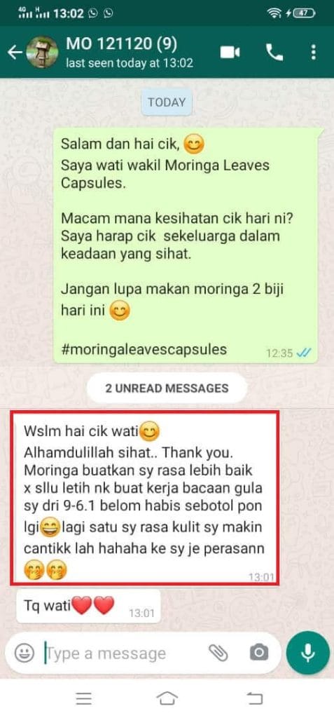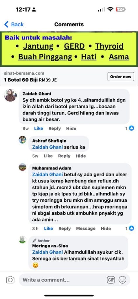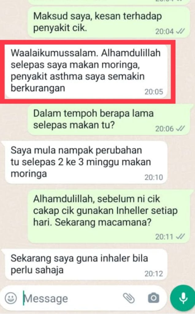 Anda dapat jaminan sekuat ini kerana Moringa Oleifera as-Sina sudah berjaya membantu ramai orang yang mempunyai masalah SAMA SEPERTI ANDA dan ia terbukti berkesan.